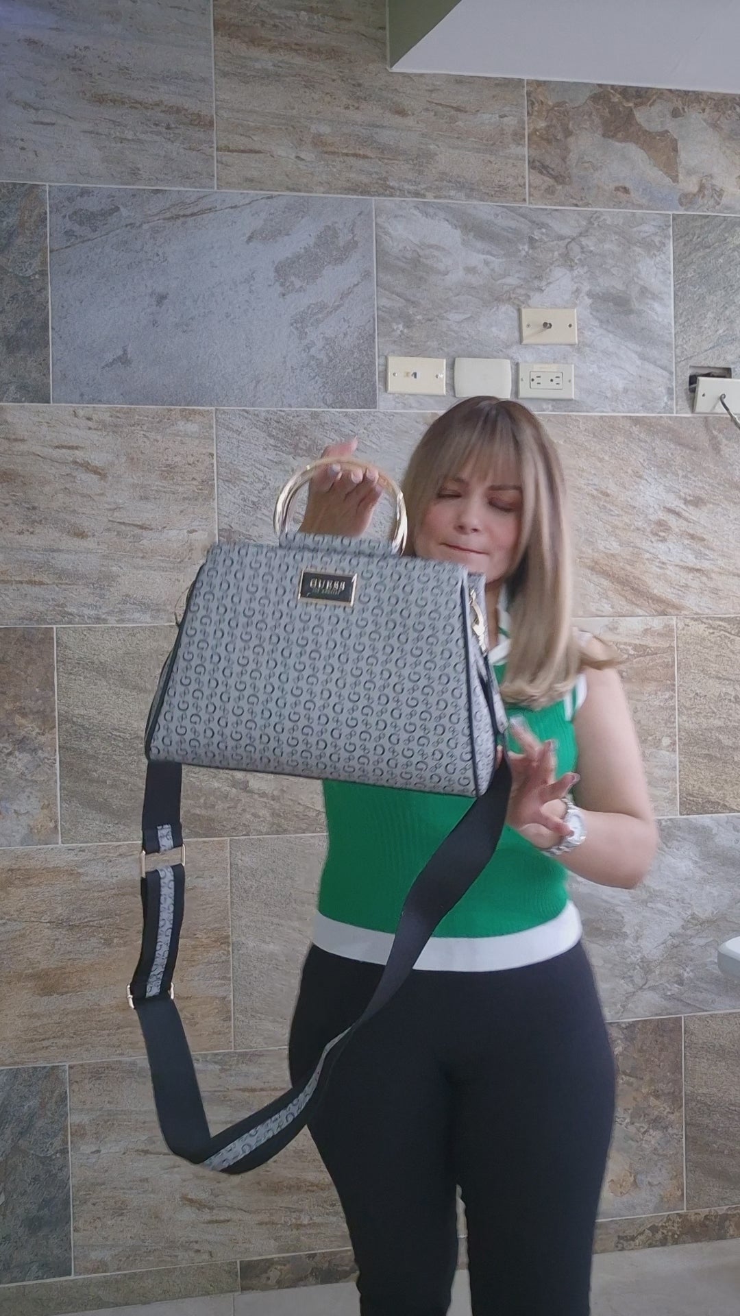 Versatile bag with a modern design and textured finish that combines elegance and practicality .