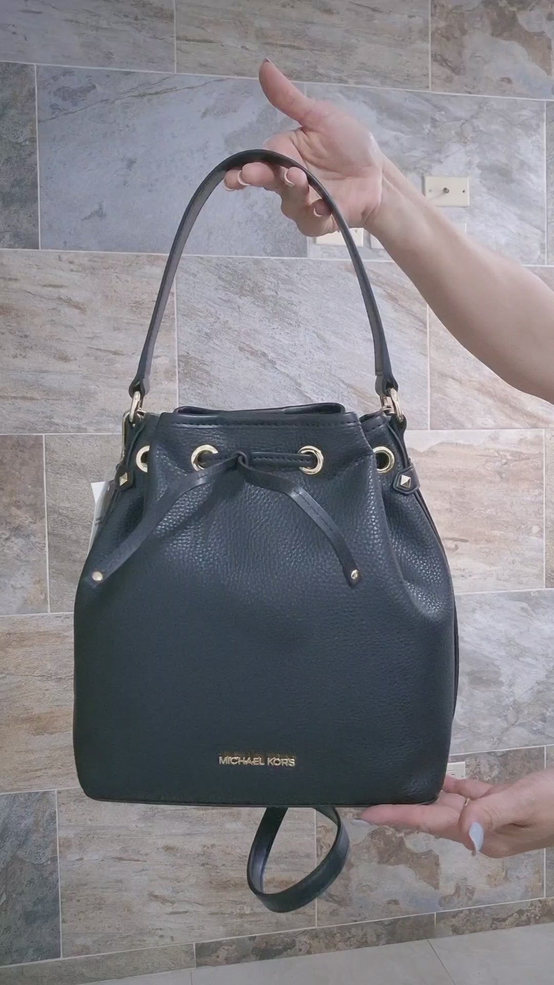 Versatile bag with a modern design and textured finish that combines elegance and practicality .