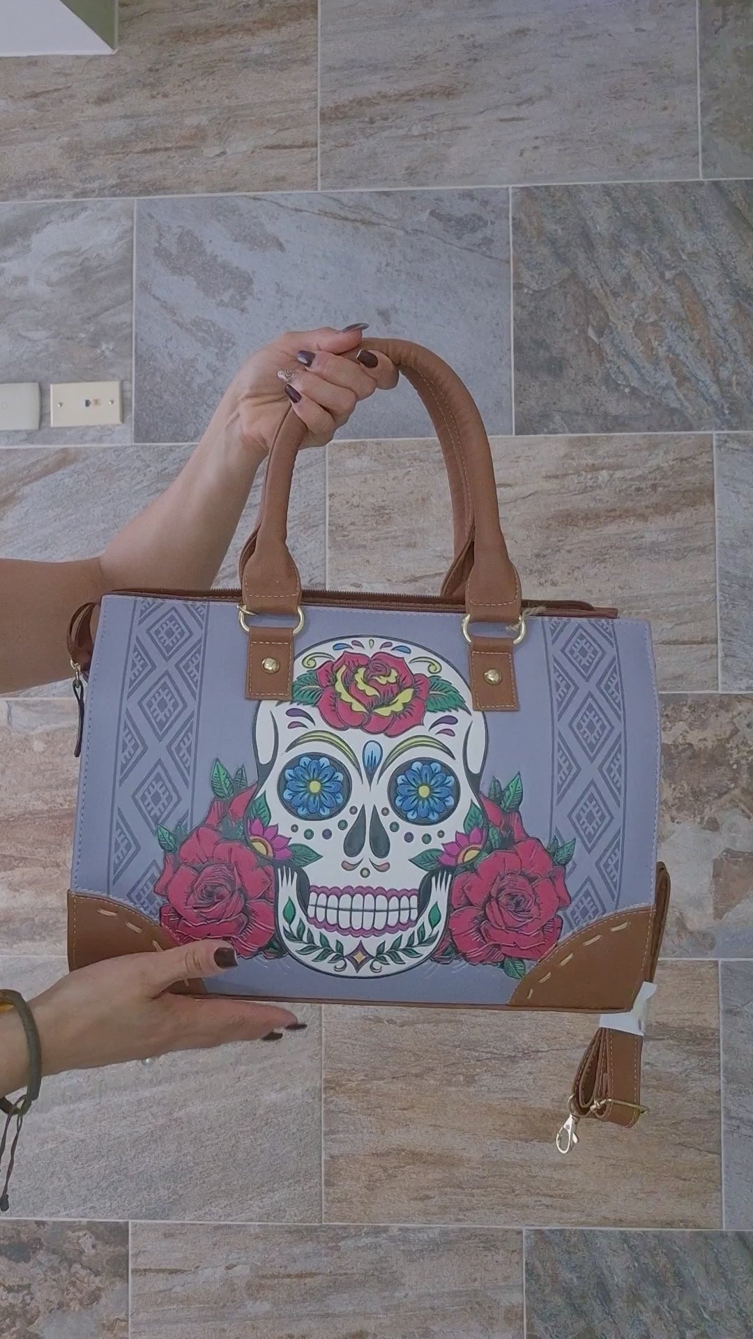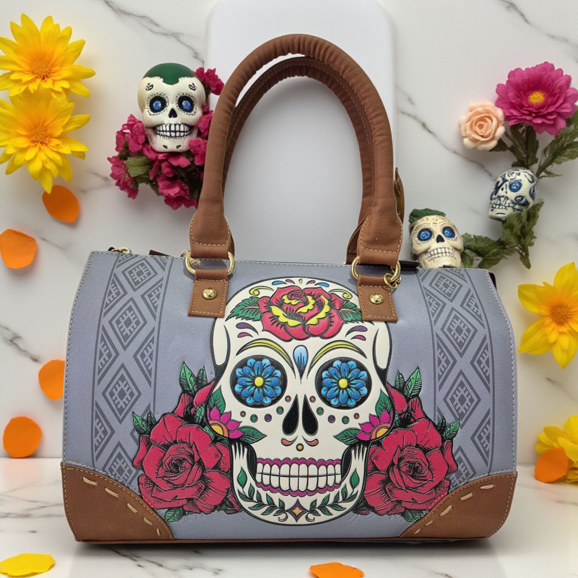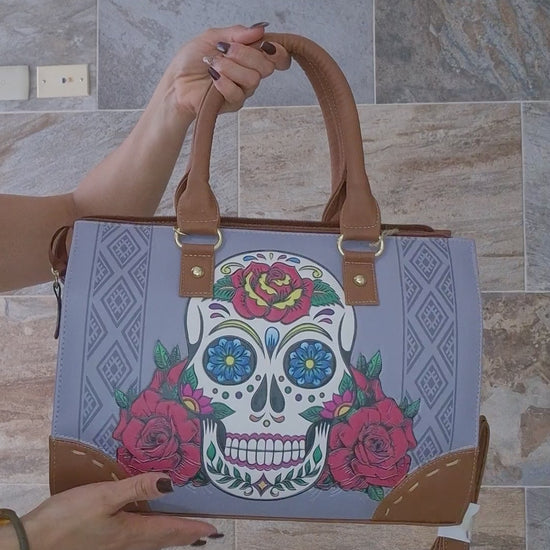 Bolsa Artesanal Mexicana Dama Asa Larga y Asa Corta – Diseño Calavera Floral Colorido