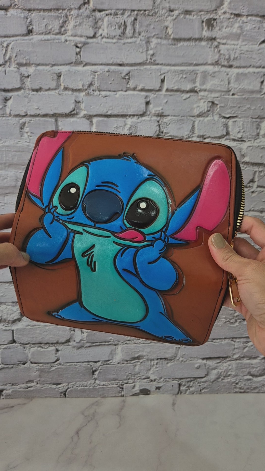 Dale un toque especial a tu estilo con esta billetera artesanal de acabado en color café y diseño divertido. Su doble cierre ofrece mayor seguridad y practicidad, manteniendo todas tus pertenencias bien organizadas.