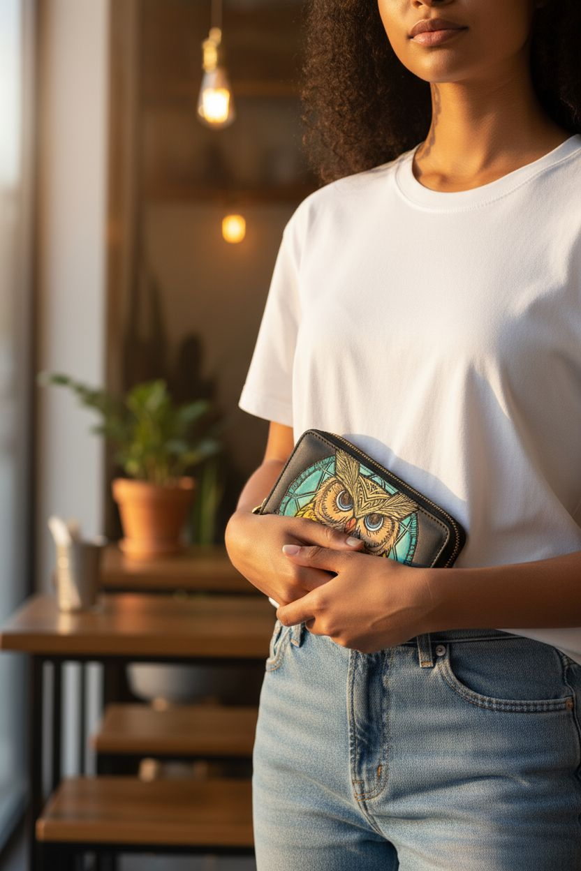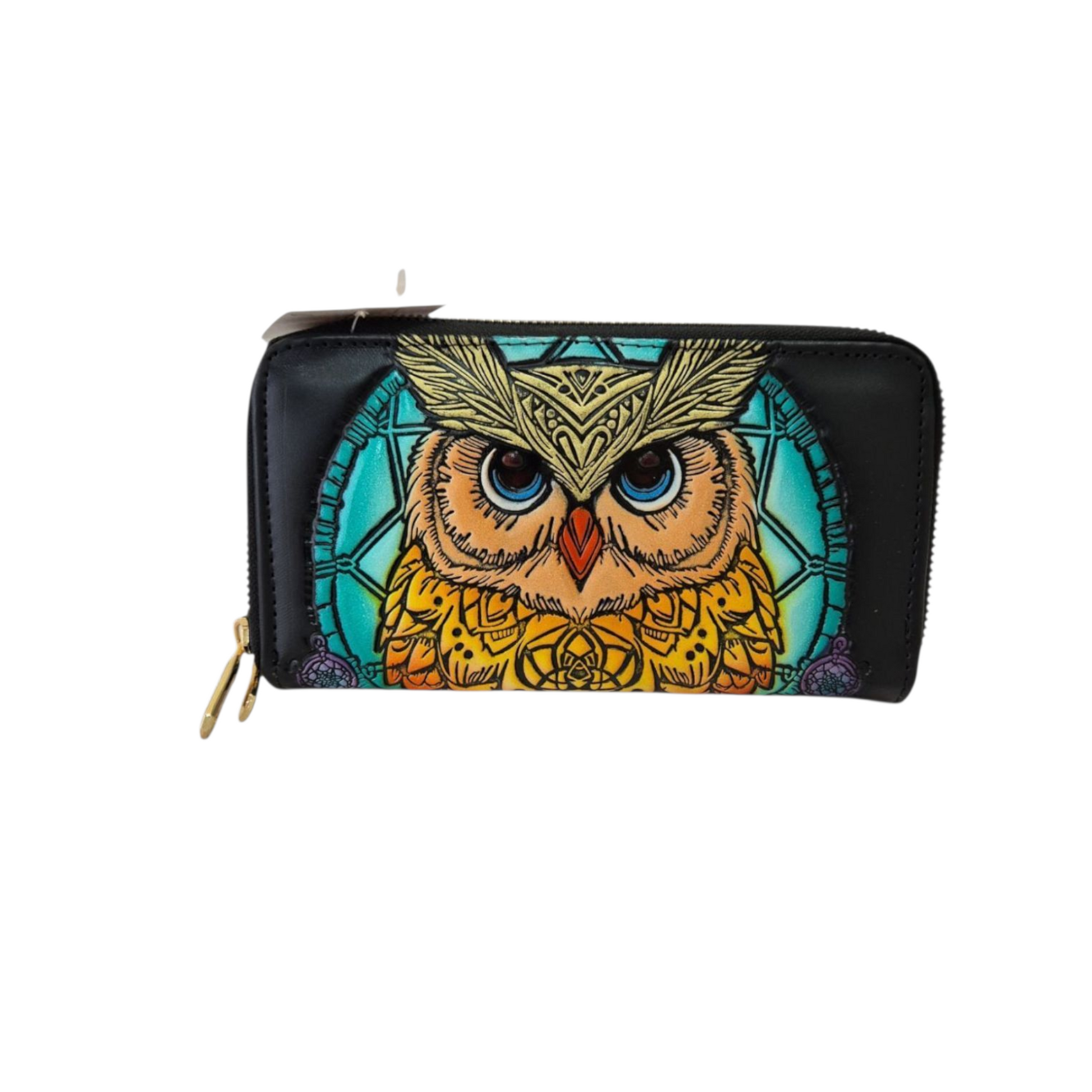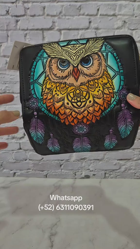 Agrega un toque único a tu estilo con esta billetera artesanal diseñada con un colorido búho enmarcado en un atrapasueños color verde. Su diseño vibrante y detallado refleja protección, sabiduría y estilo, ideal para quienes buscan un accesorio original y lleno de personalidad.