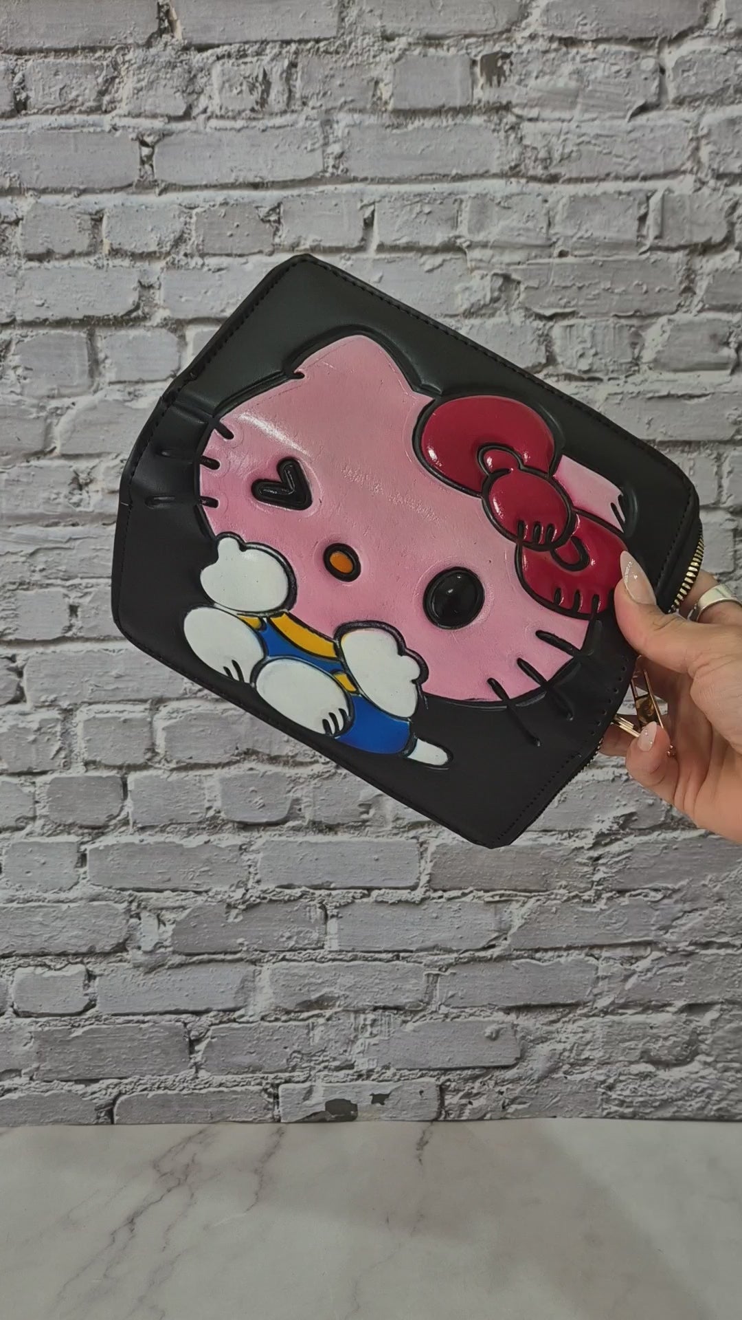 Lleva la ternura contigo con esta encantadora billetera artesanal con diseño de gatita rosa y moño. Su estilo divertido y original combina funcionalidad con un toque adorable, perfecta para el día a día o como regalo especial.
