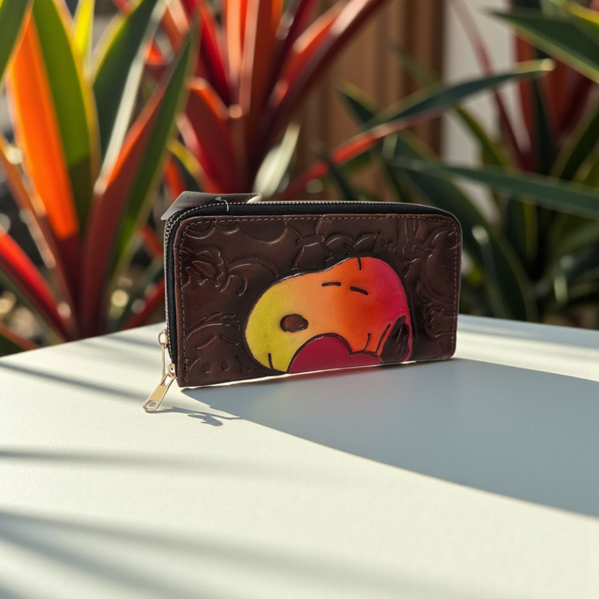 Lleva contigo un pedacito de arte mexicano con esta billetera artesanal hecha a mano. Diseñada con piel grabada y detalles coloridos, combina tradición y estilo en cada costura.