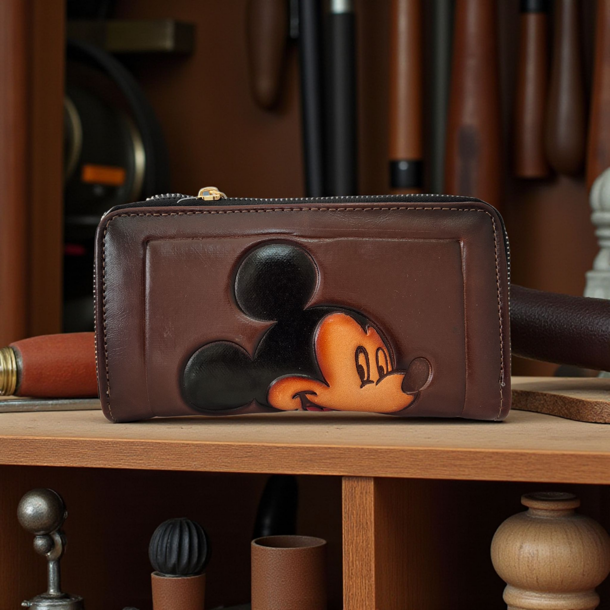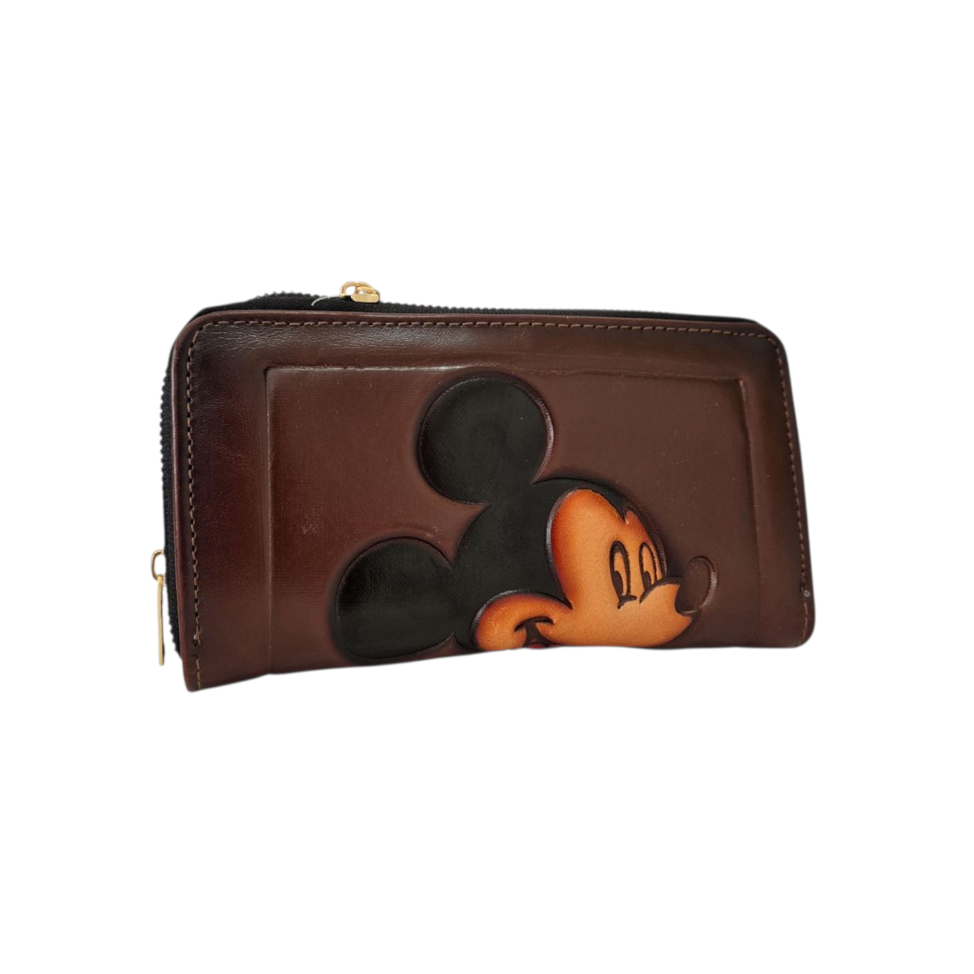 Dale un toque especial a tu estilo con esta billetera artesanal de acabado en color café y diseño divertido. Su doble cierre ofrece mayor seguridad y practicidad, manteniendo todas tus pertenencias bien organizadas.