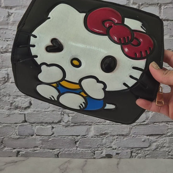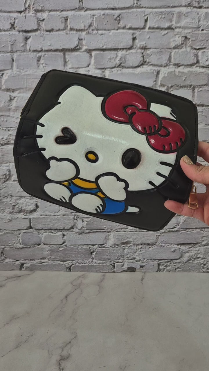 Dale un toque tierno y divertido a tu estilo con esta encantadora billetera negra decorada con un adorable gatito de lazo rojo. Su diseño artesanal en relieve resalta los detalles coloridos que la hacen única. Perfecta para quienes aman los accesorios con personalidad.
