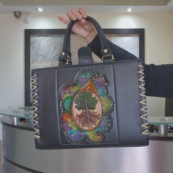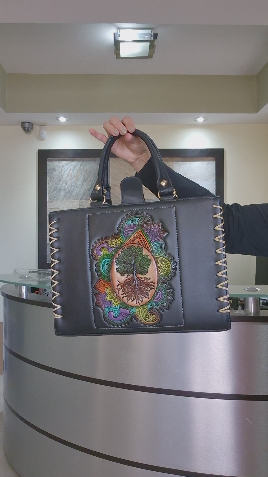 Descubre la armonía entre arte y estilo con esta hermosa bolsa artesanal inspirada en el Árbol de la Vida. Su diseño colorido, lleno de detalles grabados y costuras decorativas, refleja equilibrio, crecimiento y conexión con la naturaleza. Ideal para complementar cualquier look con un toque único y significativo. 🌿✨