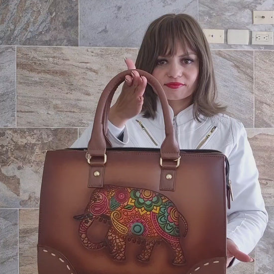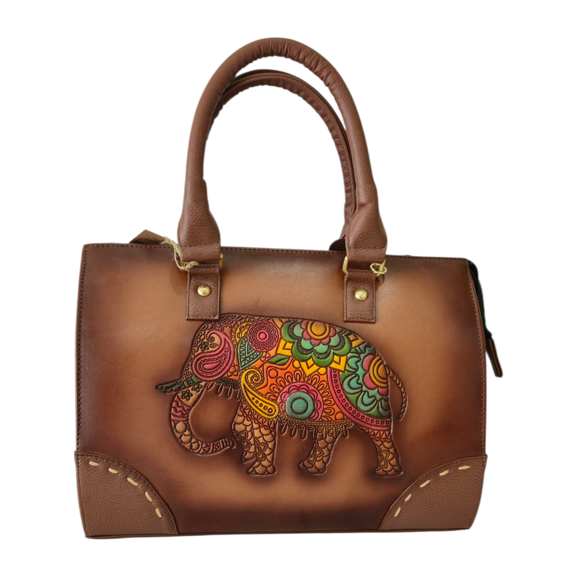 Bolsa Artesanal con Elefante Mandala Grabado y Colores Vibrantes