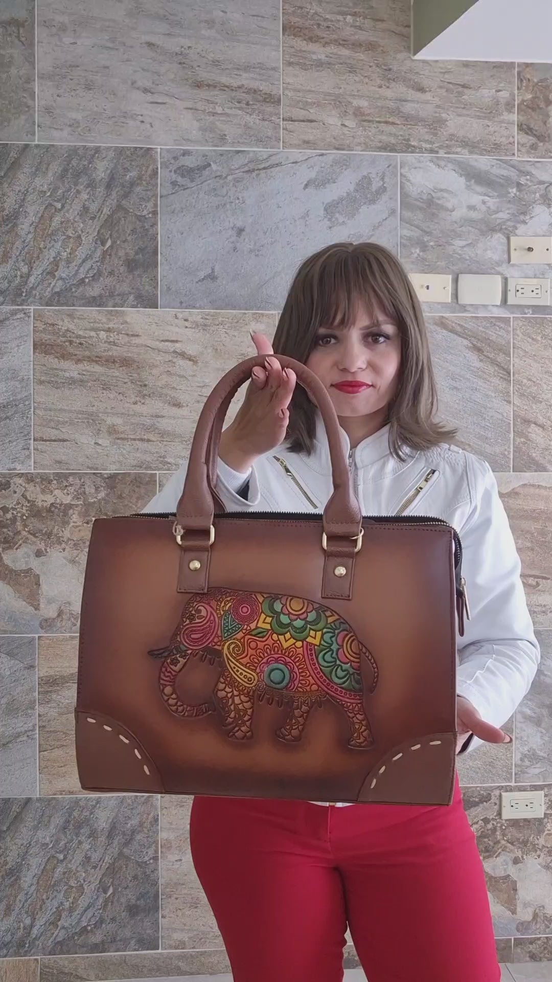 Eleva tu estilo con esta hermosa bolsa artesanal, decorada con un elefante estilo mandala grabado y pintado con colores vibrantes. Su diseño lleno de detalles aporta un toque artístico, espiritual y único, convirtiéndola en un accesorio que destaca por sí solo.