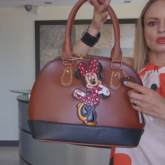 Bolsa marron artesanal Doble asa reforzada Diseño único en relieve Moda casual elegante