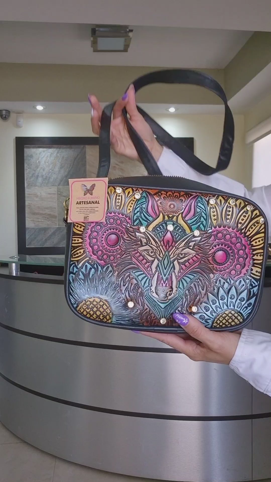 Dale vida a tu estilo con esta bolsa crossbody artesanal, hecha a mano con un vibrante diseño de lobo lleno de colores y detalles dorados que iluminan tu look. Perfecta para quienes buscan originalidad, cultura y elegancia en una sola pieza.