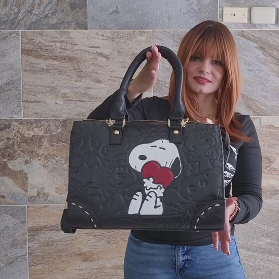 Eleva tu estilo con esta bolsa de mano artesanal, diseñada para quienes buscan elegancia con un toque emotivo. Su acabado en color negro destaca por un diseño en relieve cuidadosamente trabajado, acompañado de un corazón decorativo en tono rojo que aporta contraste y personalidad.
