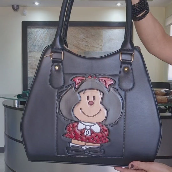 Esta bolsa artesanal combina elegancia y creatividad en una sola pieza. Elaborada completamente a mano por artesanos mexicanos, su diseño grabado y pintado refleja una figura entrañable y alegre, ideal para quienes buscan un accesorio diferente y lleno de personalidad.