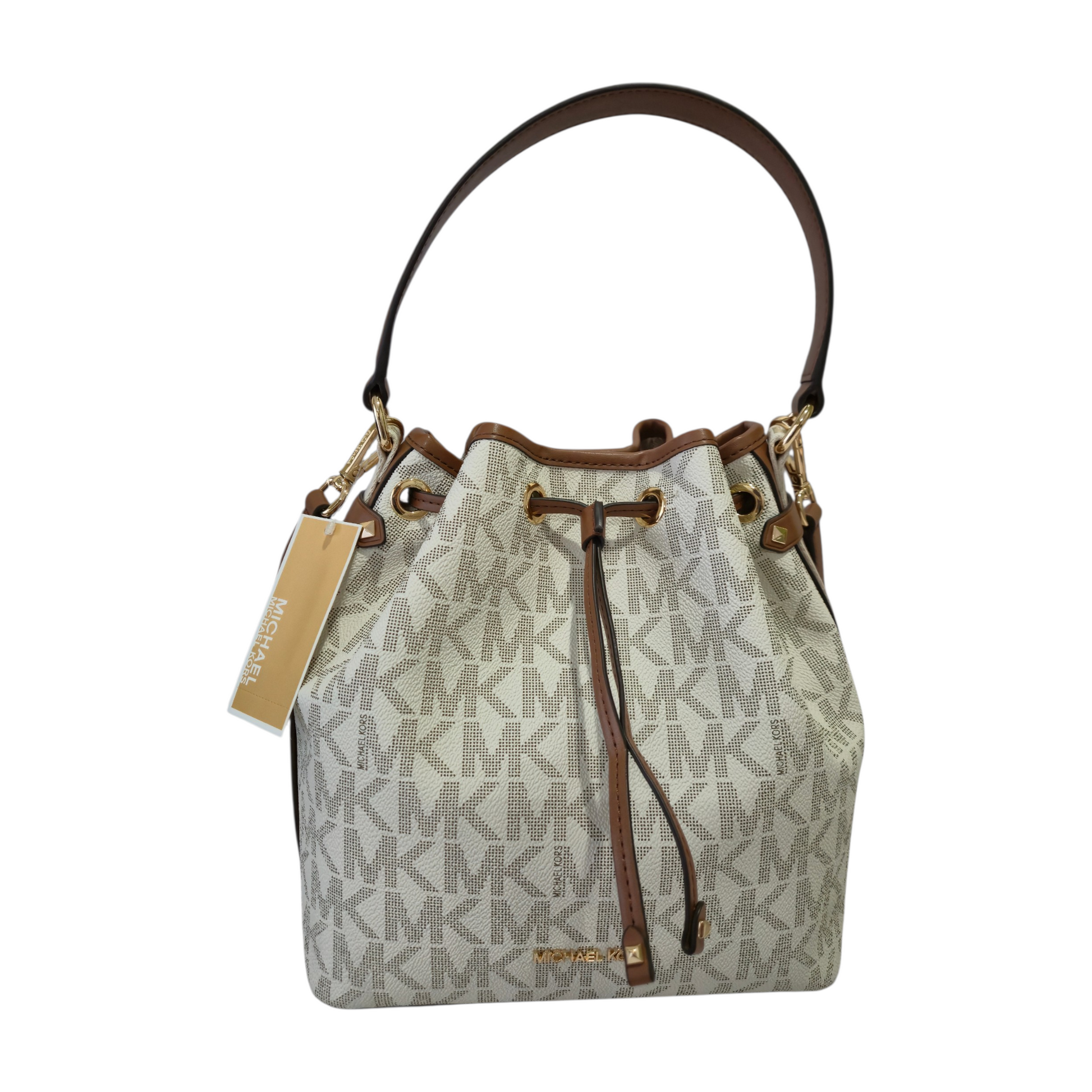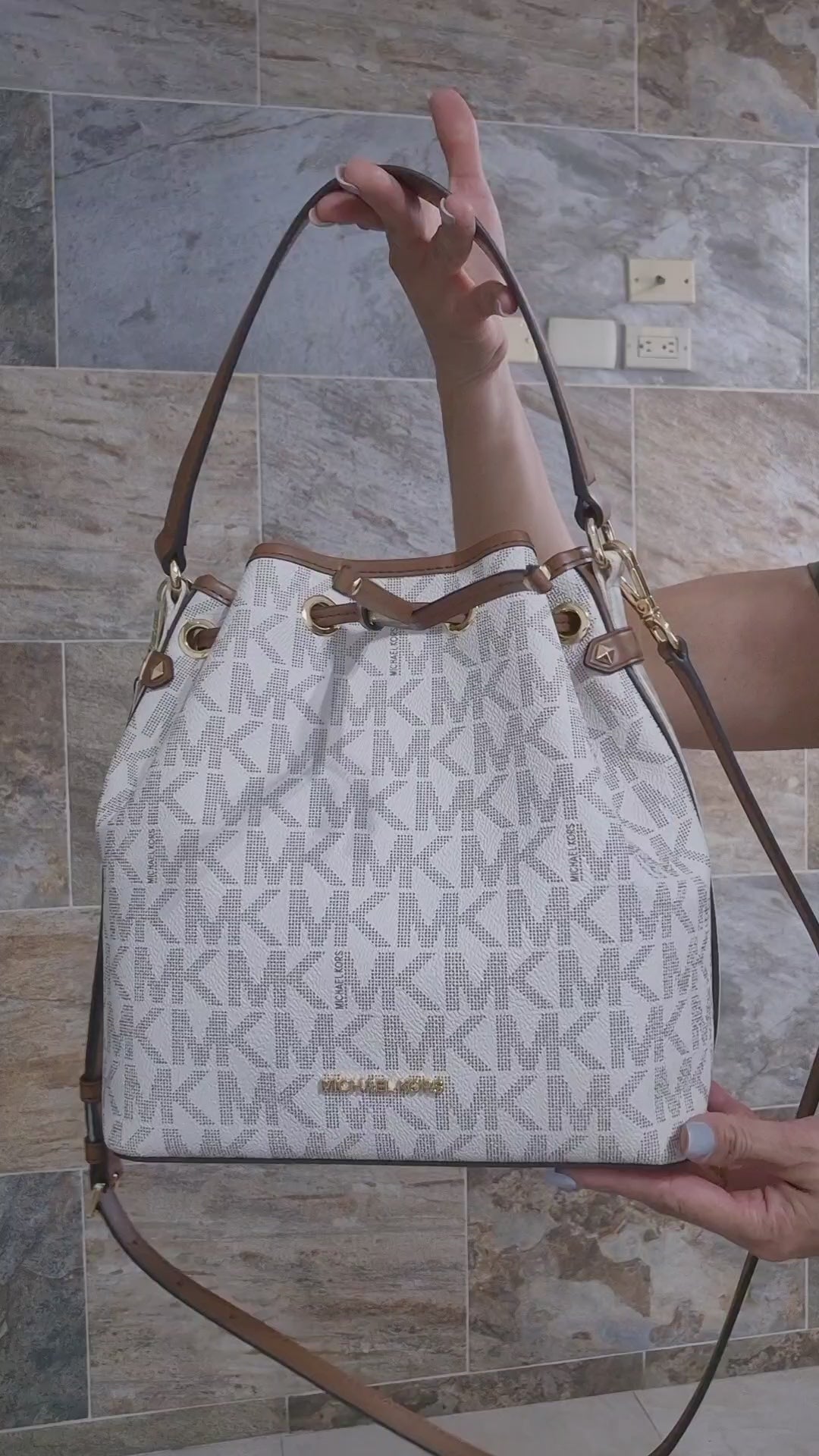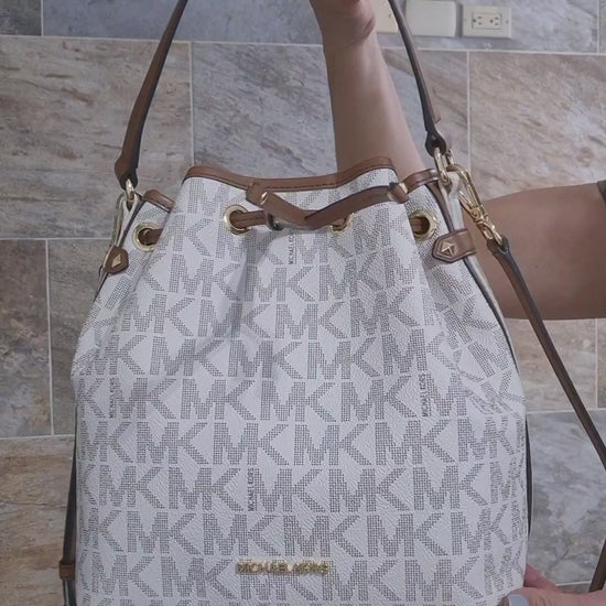 Bolsa Michael Kors Maeve bucket MK Signature vanilla café original