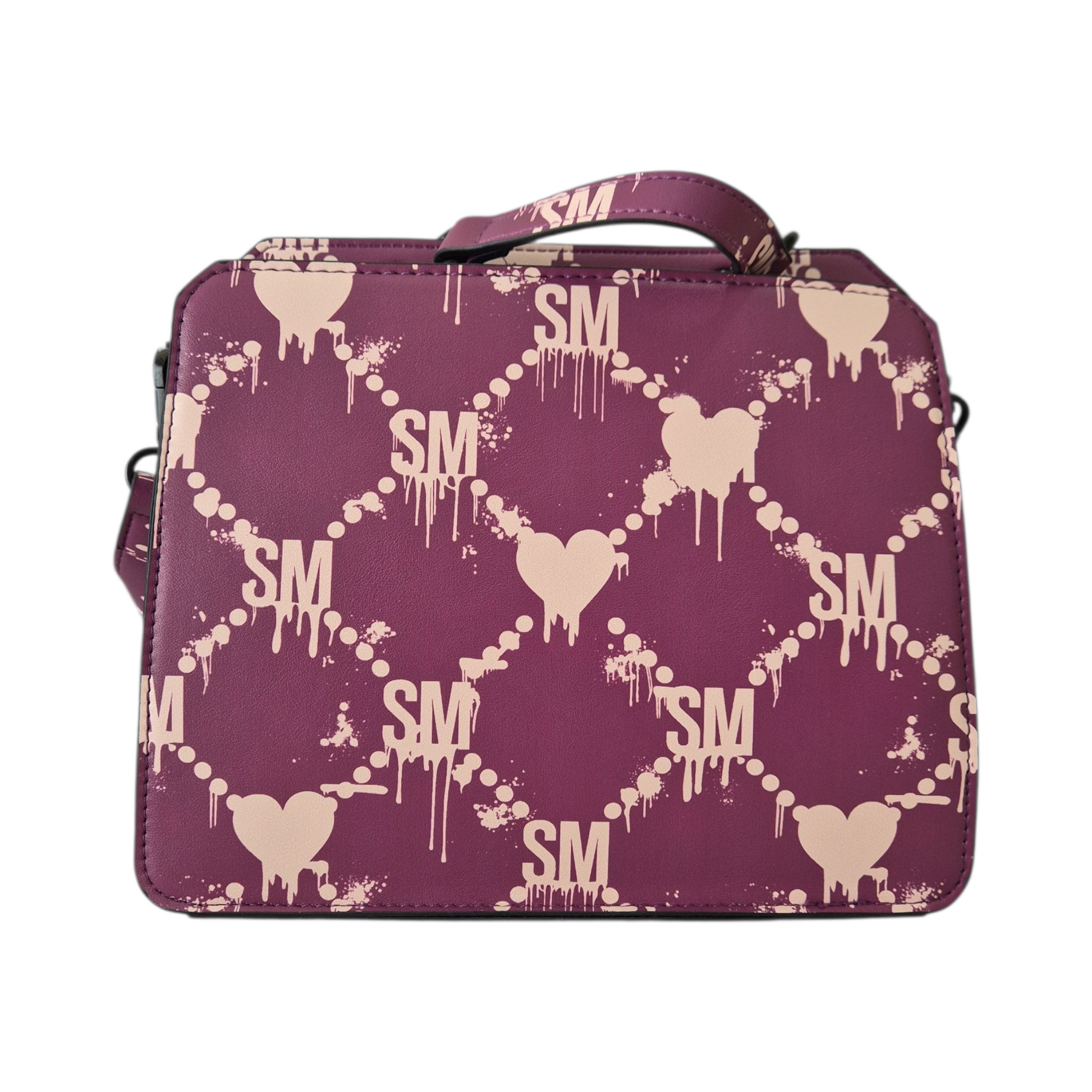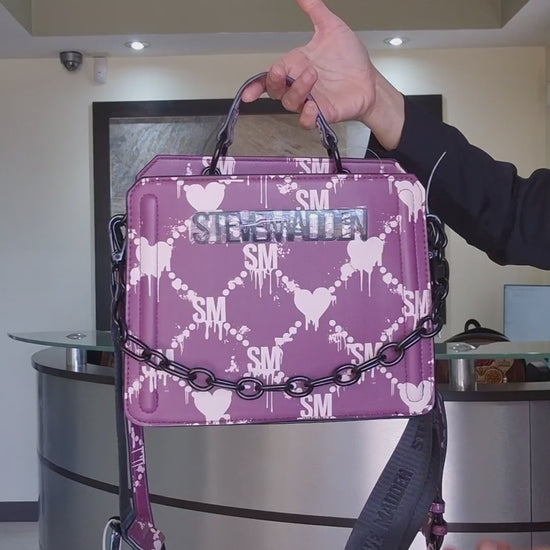 Eleva tu estilo con esta impresionante bolsa de diseñador en tono morado, creada para quienes buscan un accesorio original, moderno y lleno de personalidad. Su estampado de corazones con estilo urbano y detalles en tonos suaves la convierten en una pieza llamativa y única, ideal para complementar cualquier outfit.