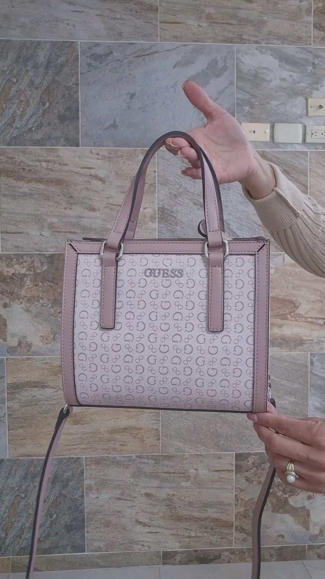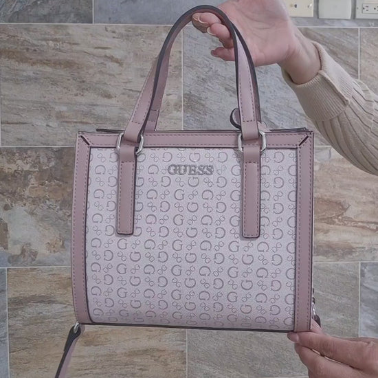 Bolso Guess crossbody rosa con monograma y correa ajustable