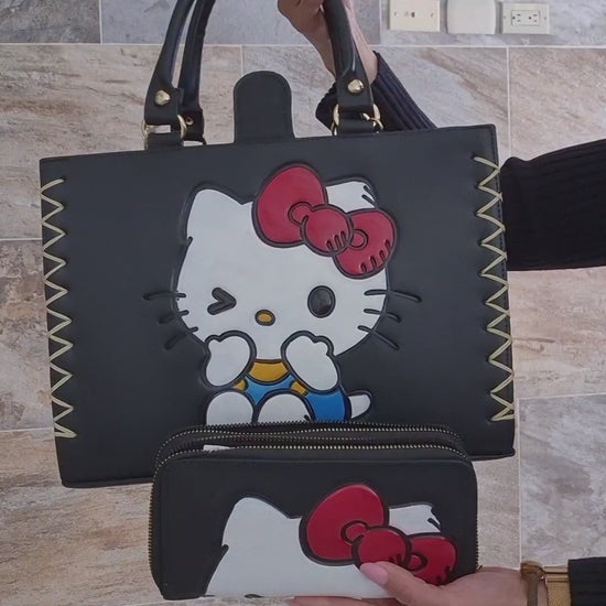 Bolso de Mano Negro con Diseño Cute + Billetera a Juego | Estilo Único y Elegante