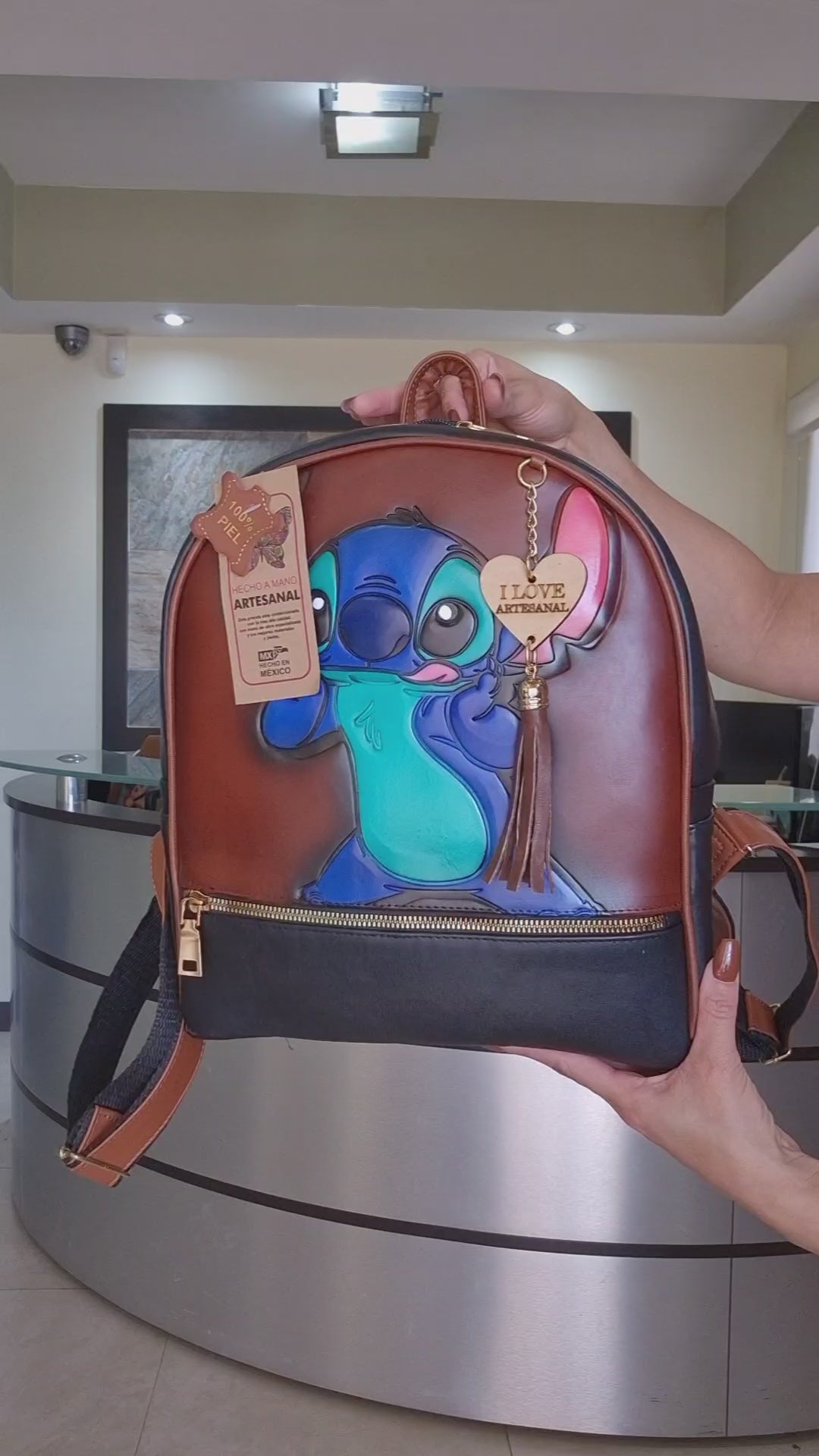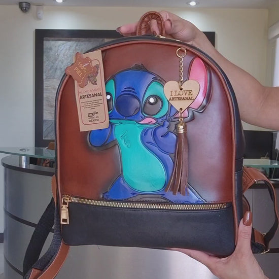 Mochila Artesanal de Piel para Mujer con Diseño de Personaje Animado – Hecha a Mano en México