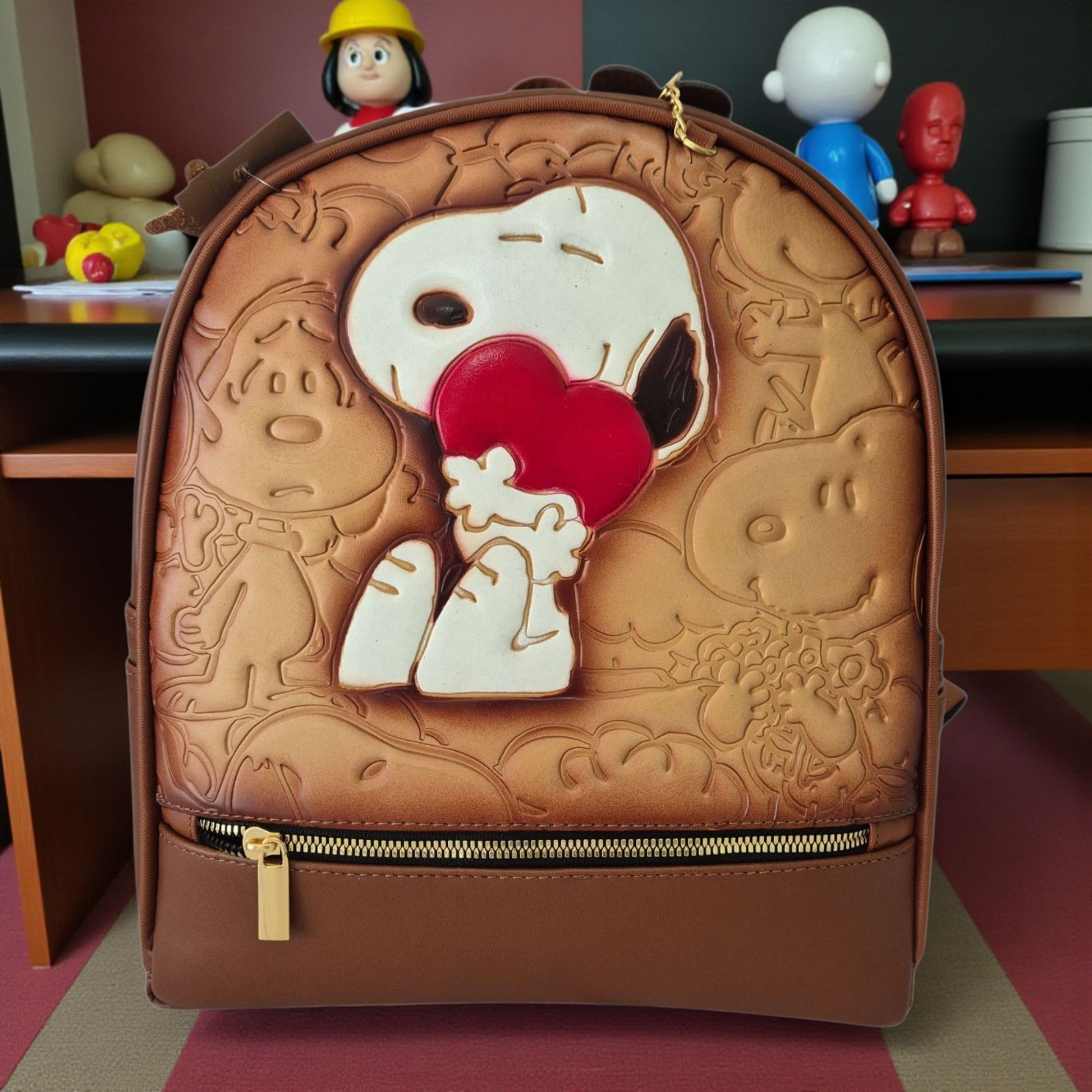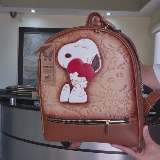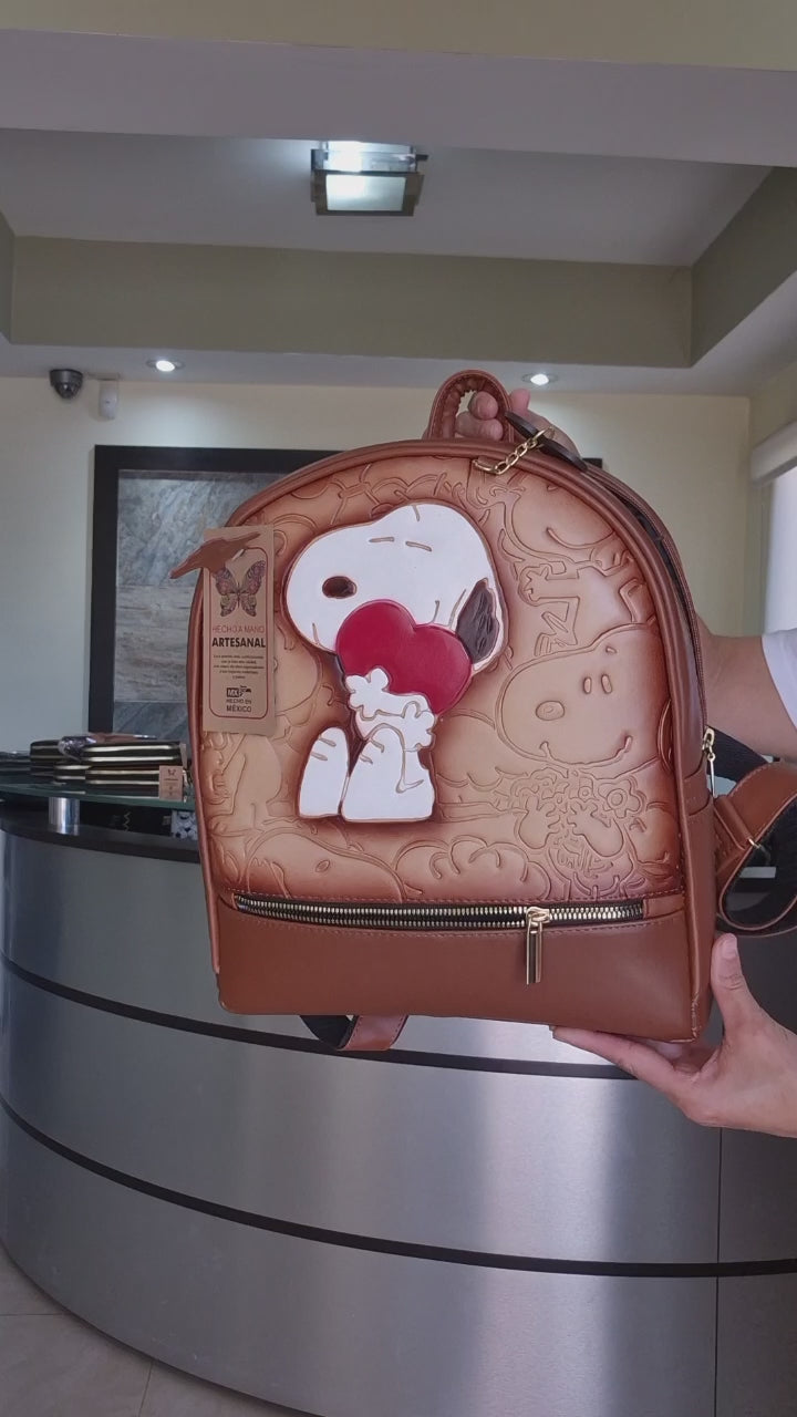 Mochila única elaborada de forma artesanal, con un hermoso diseño en relieve pintado a mano en cálidos tonos café y beige. Su acabado artístico le da un estilo original y elegante, ideal para quienes buscan un accesorio diferente y lleno de personalidad.