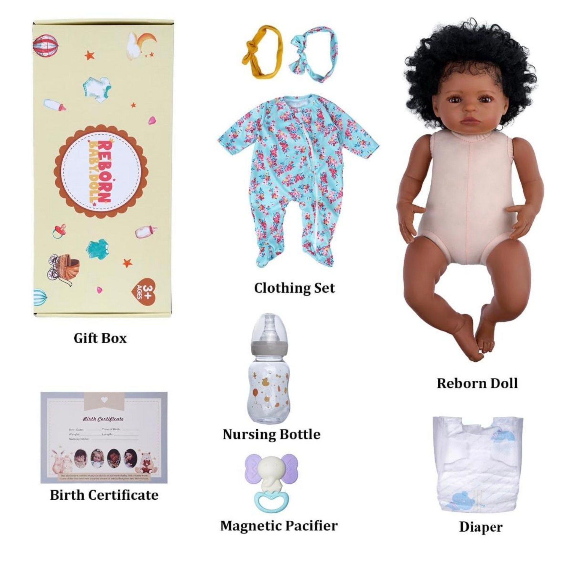 🎁 Incluye: atuendo floral, chupete magnético, biberón, sonajero, pañal y certificado de nacimiento.