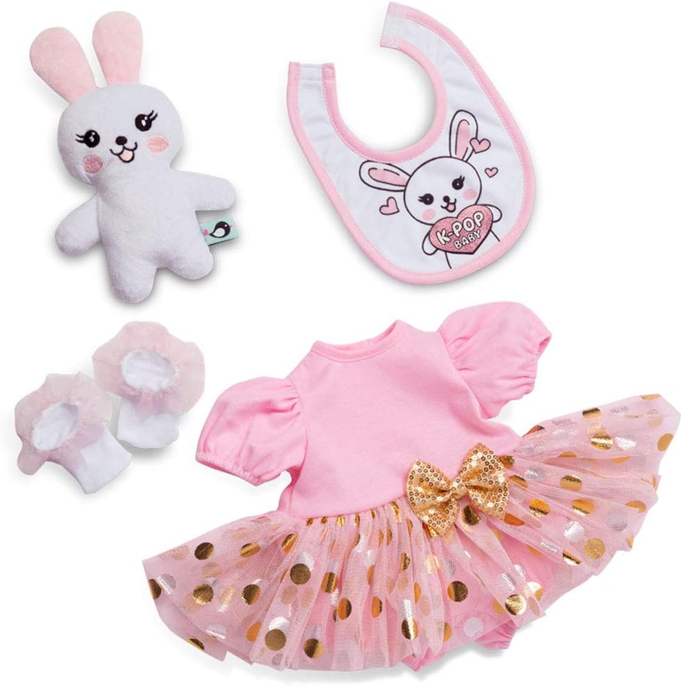 Luce un adorable mameluco rosa con falda tutú integrada, con un babero a juego y unos encantadores calcetines de tul con volantes, listos para completar un look dulce y mágico. Además, incluye un tierno conejito de peluche, perfecto para acompañar cada momento de juego y cariño.