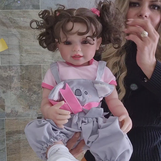 Sus ojos aplicados a mano, pestañas delicadas y cabello enraizado crean una expresión dulce y encantadora, ideal para quienes buscan una muñeca con presencia realista y calidad superior. Cada gesto y rasgo ha sido cuidadosamente elaborado para transmitir calidez, inocencia y emoción.
